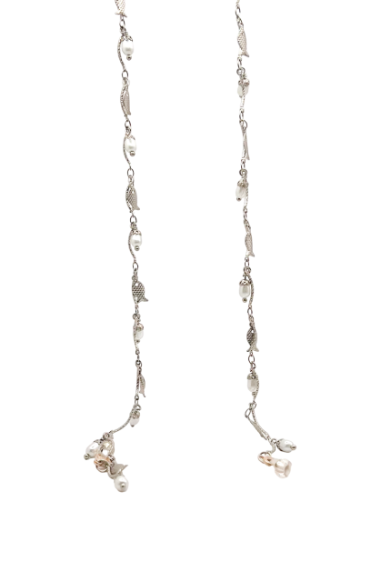 Ασημιά Αλυσίδα με Πέρλες και Ψαράκια